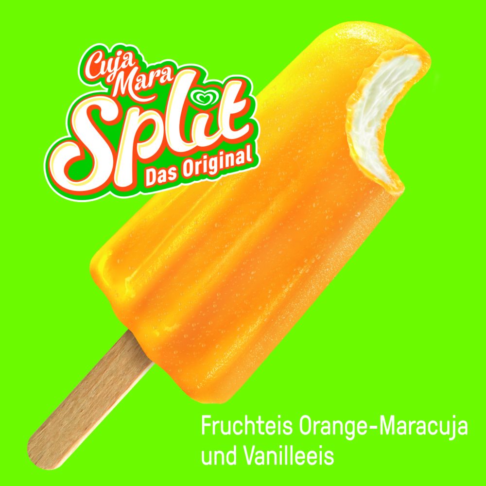 Vanilleeis mit einer leckeren Fruchteisumhüllung mit Maracujageschmack.