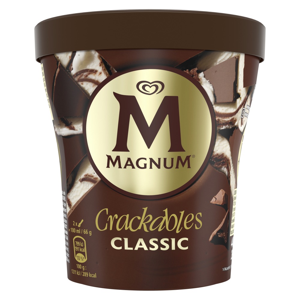 Vanilleeis mit Milchschokostückchen und einer knackigen Milchschokoladenhülle.