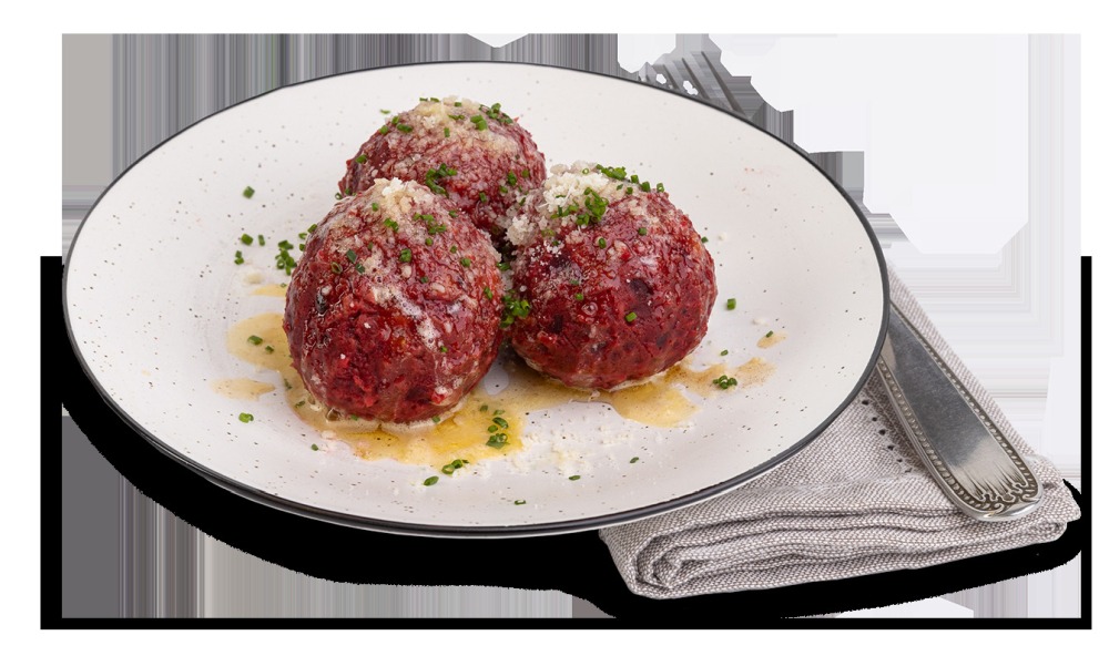 Der charakteristische erdig-süße Geschmack, die leuchtende Farbe, sowie die vielen Nährstoffe der „Tollen-Knolle“ machen die Rote Bete immer beliebter. Im Knödel verpackt bietet sie eine tolle Abwechslung auf dem Teller und überzeugt mit fruchtig-lieblichem Geschmack und Aussehen. Besonders lockere Konsistenz.