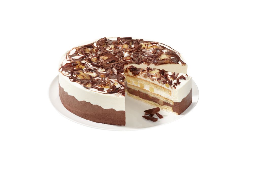 Der Dessertklassiker als Tortengenuss! Auf einem Mürbeteigboden liegt zwischen zwei lockeren Biskuitböden ein Duett aus Kakao-Sahne und Birnenstücken. Darauf eine fruchtige Birnensahne mit Birnenstückchen und ein weiterer Biskuitboden. Eine Birnensahne mit verstrudeltem Dekor aus Birnenfruchtzubereitung, dunkler Kakaocreme und Schokoladenraspel, rundet den Tortenklassiker ab.