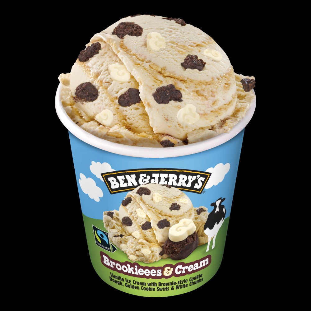 Vanilleeiscreme mit Kakao-Cookieteig-Stücken durchzogen von Keks-Strudeln