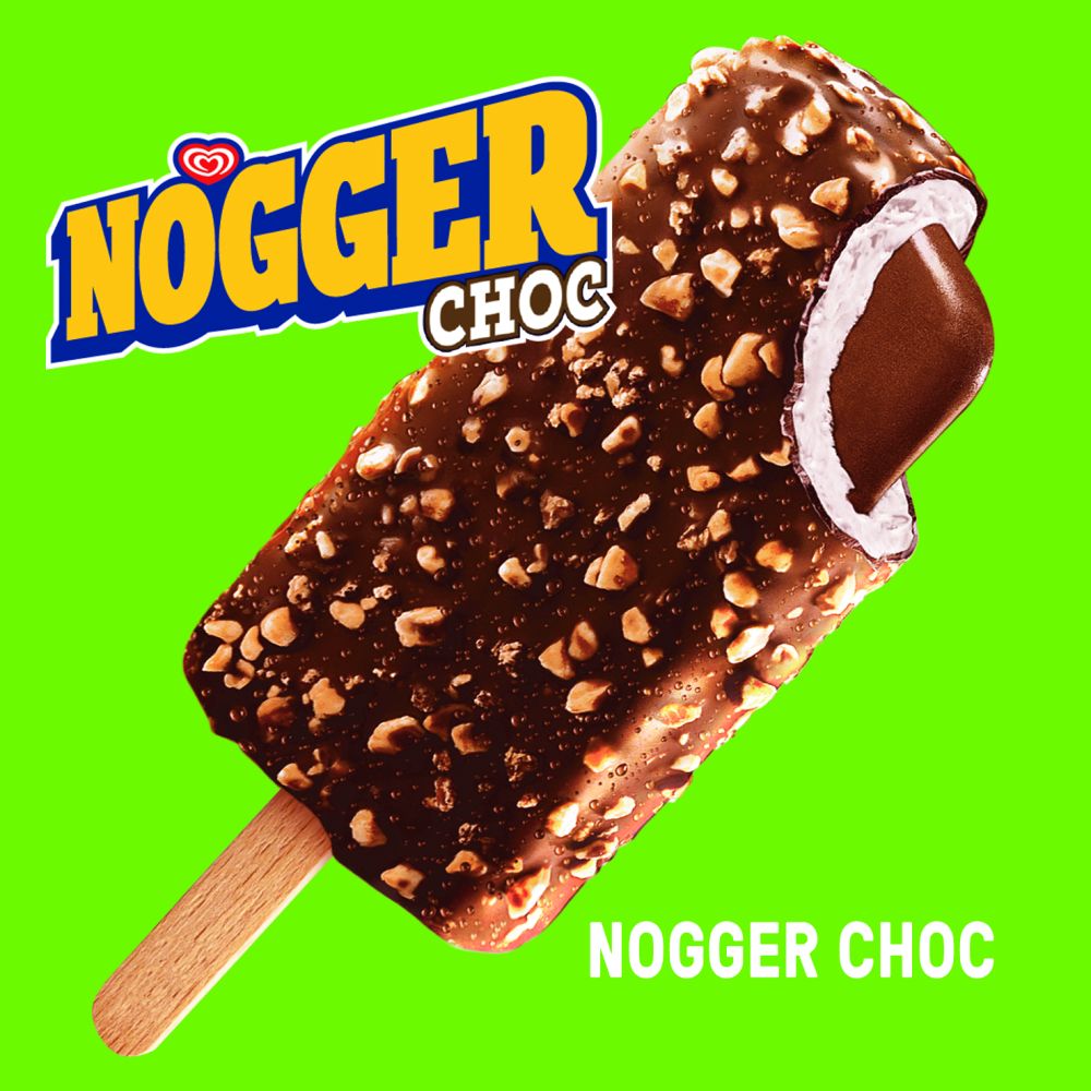 "Nogger Dir einen!" - Ist nicht nur eine Aufforderung sondern eine Lebenseinstellung. Außen knackige Kakaoglasur mit weißen Nougatstückchen und innen einen unverwechselbaren Nougatcremekern, getreu dem Motto "Harte Schale, härterer Kern".